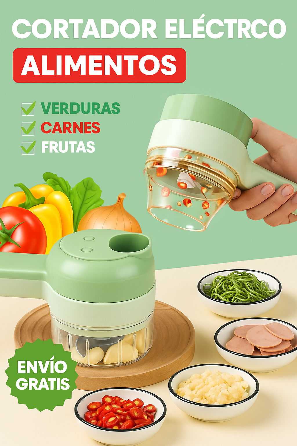 Dile adiós al esfuerzo y dale la bienvenida a la comodidad! Con nuestro Cortador de Verduras Eléctrico, preparar tus comidas favoritas será más rápido y divertido. Solo coloca los ingredientes, presiona un botón… ¡y disfruta del resultado en segundos!